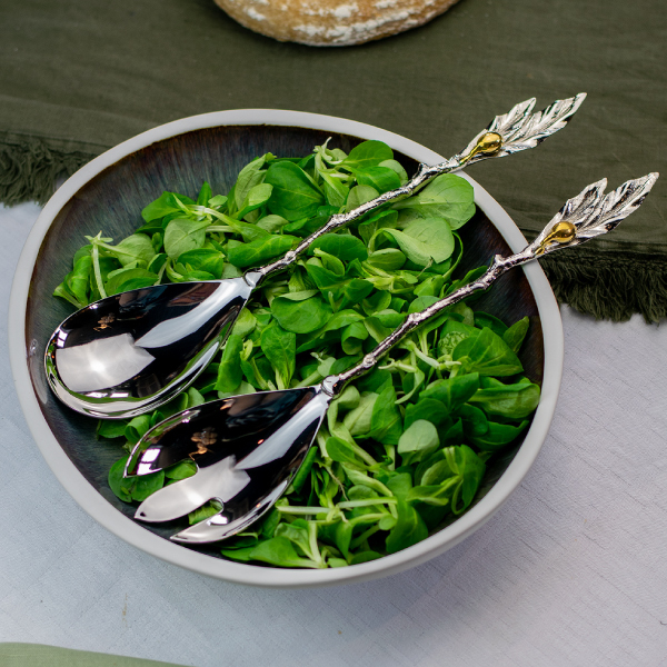 Serve deliciously dressed salads with a touch of Mediterranean splendour with these olive themed salad servers. With a twisted, bark effect handle and decorative olive and leaf motif, add a touch of nature to mealtimes.