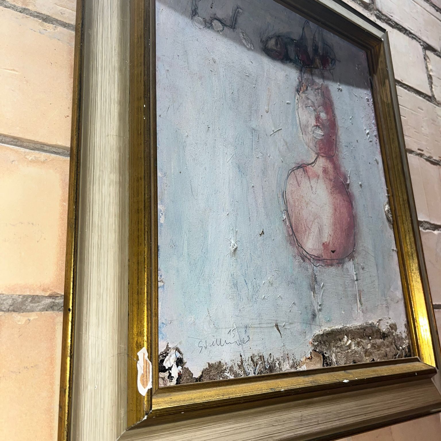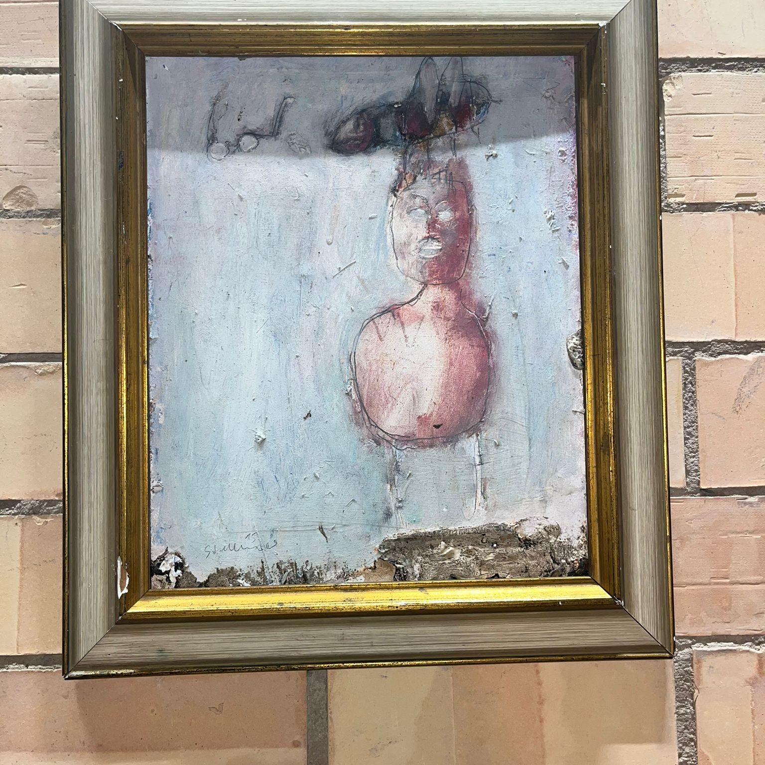 “LOST GLASSES” (2015) is an emotionally charged original by Reinhard Stammer, one of the most distinctive voices of contemporary European Art Brut. Painted in mixed media on wood, this work reveals the artist’s fascination with human perception, loss, and identity. The composition features a fragile, faceless figure rendered in muted pastel tones, marked by a ghostly outline of eyeglasses hovering above—a symbolic absence that transforms into the central motif of the painting.